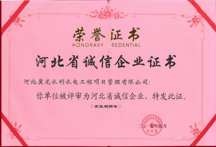 “誠信企業(yè)”是指經(jīng)營狀況良好,誠信理念較強,誠信管理制度健全有效,積極履行社會責任,并取得較高認知度和良好信用記錄的企業(yè)。我公司堅持“守法、誠信、公正、科學”的企業(yè)監(jiān)理準則和“強化行業(yè)競爭意識,創(chuàng)優(yōu)質監(jiān)理品牌,鑄一流企業(yè)形象”的經(jīng)營理念,形成了規(guī)范、完善的質量管理體系。2010年1月,公司通過了IS09001:2008質量體系認證,質量更有保障,讓業(yè)主更加放心。2017年7月18日公司通過了質量、環(huán)境、職業(yè)安全健康興原管理三體系認證,堅持以顧客為關注焦點,堅持持續(xù)改進,為職工和社會營造安全、健康的環(huán)境。公司多次榮獲“南水北調文明監(jiān)理單位”、“南水北調中線干線安全運行先進單位”、河北省南水北調工程建設監(jiān)理工作“優(yōu)秀單位”、“南水北調中線干線工程優(yōu)秀建設單位”等榮譽稱號。