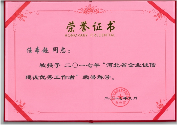我公司獲“河北省誠信企業(yè)”榮譽稱號 執(zhí)行董事任本超獲“河北省企業(yè)誠信建設優(yōu)秀工作者”稱號