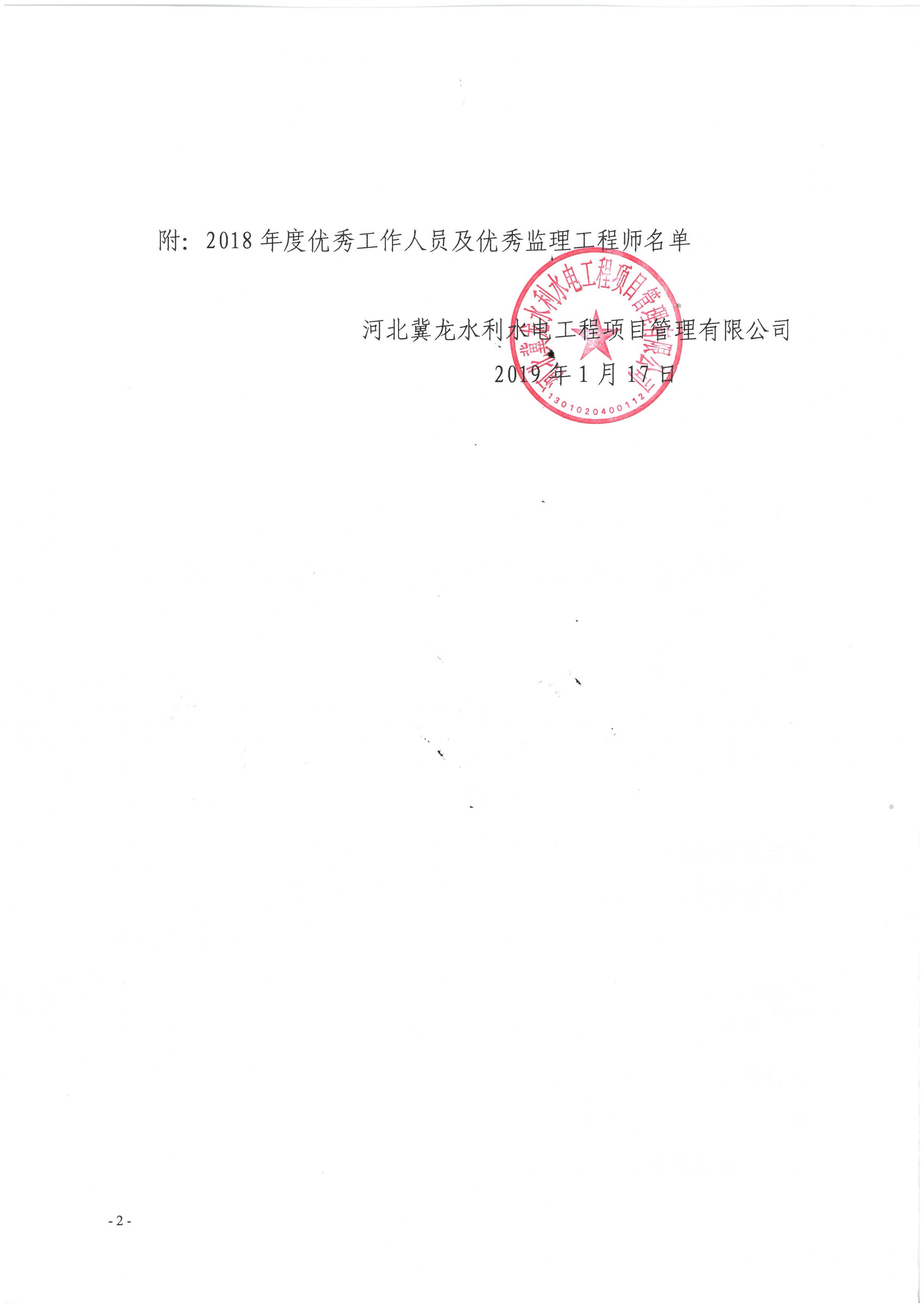 關(guān)于表揚2018年度優(yōu)秀工作人員、優(yōu)秀監(jiān)理工程師的決定